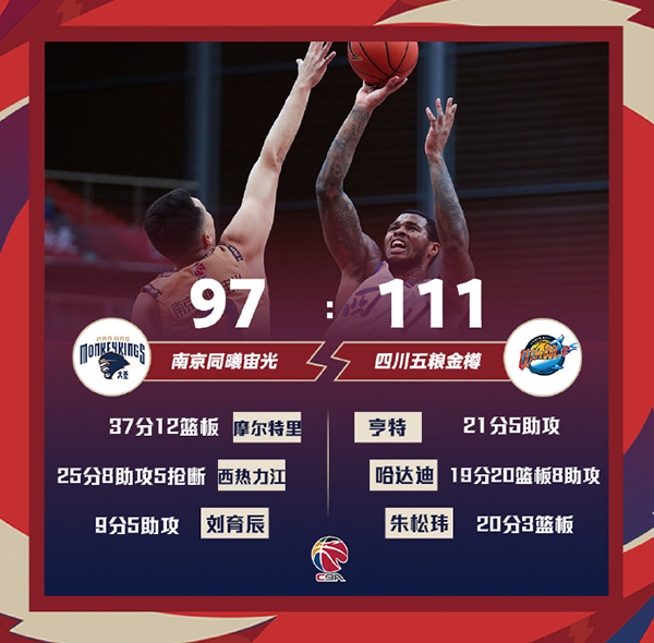四川(12-13):哈达迪19分20篮板8助攻7失误,亨特21分4篮板5助攻2抢断,朱松玮20分3篮板2封盖,韩硕17分6篮板3助攻,李泓翰6分,景菡一15分3篮板2助攻,苏若禹4分9篮板2抢断,袁堂文4分3篮板8助攻。