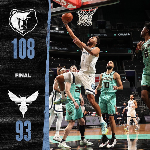 24直播网1月2日讯 黄蜂今日坐镇主场迎来和灰熊的常规赛较量,灰熊因伤或新冠原因有8名球员无法上场比赛。首节比赛灰熊在拉锯战中抓住了黄蜂短暂哑火机会并送出11-0的攻势确立起领先,不过面对一直顽强追分的黄蜂,灰熊也难以继续扩大领先,凭借着对攻中的稳定输出,灰熊守住6分领先结束上半场。第三节开局灰熊冲击内线送出10-0的攻势一举确立起两位数的领先,而这波进攻也直接决定了最终的胜负,灰熊自此牢牢守住两位数领先,末节黄蜂短暂挣扎但无奈对手稳定发挥。最终,灰熊客场轻取黄蜂拿下比赛。