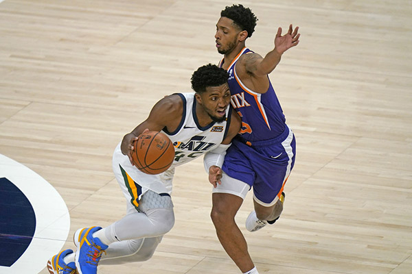 首节,布克连投带罚先下5分,米切尔毫不示弱回敬4分,戈贝尔两罚全中,米切尔再来一记三分,艾顿连进两球,博格达诺维奇空切打进,布克错位轻松拿分,两队打成11平。双方你来我往互不相让,比分连续打成平手。克拉克森、博格达诺维奇和奥尼轮番射中三分为爵士确立领先。布里奇斯急停跳投止血,克拉克森外线又是一记三分中的,佩恩突破打进,费沃斯顺下拿分,克拉克森三分弹无虚发,太阳冲击内线追回两球,首节打完,爵士33-26领先。