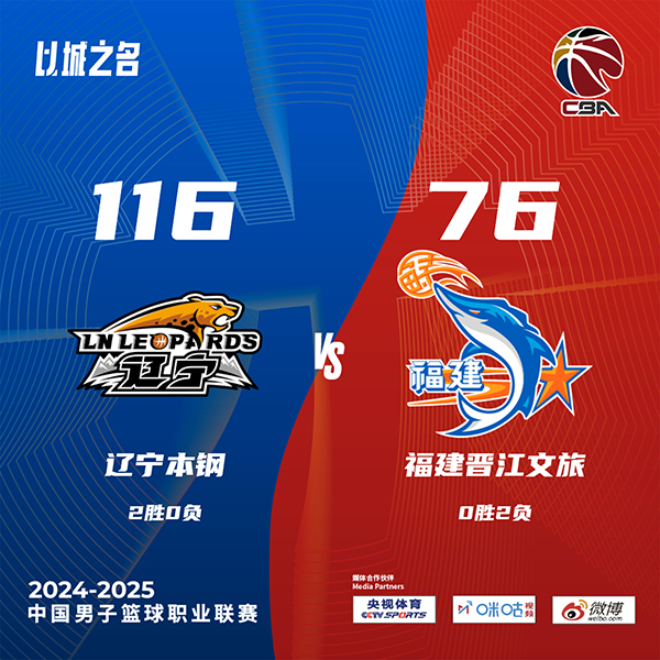 24直播网10月16日讯 CBA常规赛,辽宁主场迎战福建。比赛开始,双方短暂相持,随后辽宁持续发力打出12-0很快取得20分领先,次节福建仍无力招架,辽宁多点开花不断扩大优势,分差来到30分以上,半场战罢辽宁76-41领先福建。易边再战,辽宁命中率下降,但仍保持着大比分的领先,末节辽宁将优势扩大到40分以上,最终,辽宁116-76大胜福建。