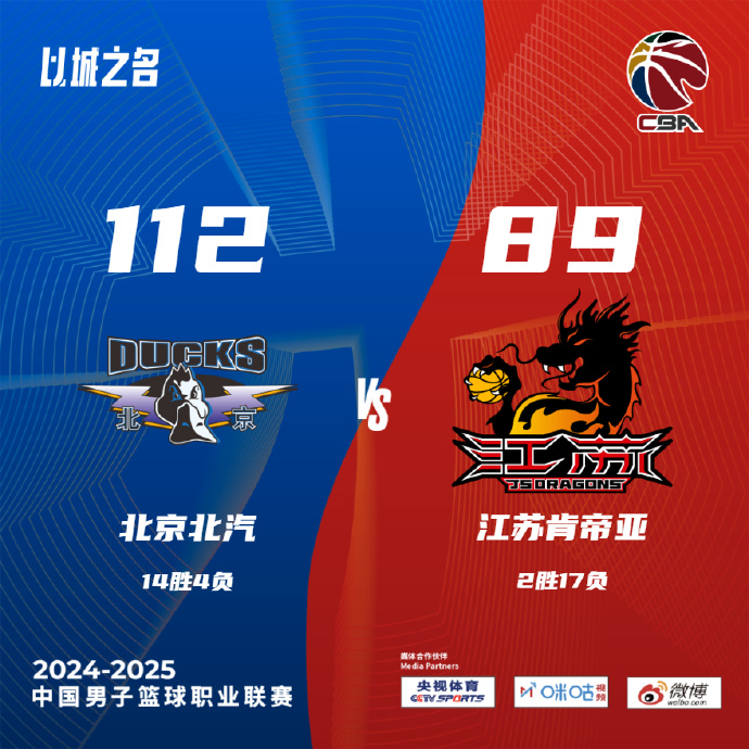 24直播网12月18日讯 CBA常规赛继续进行,北京主场迎战江苏,周琦此役感冒严重缺席,北京上场大胜天津终结三连败,目前13胜4负位列联赛第6,江苏遭遇连败,2胜16负排在联赛倒数第二。首节开打后主场作战的北京早早发力,雷蒙、丘天和所罗门轮番取分,率队打出11-2开局,江苏三外援联手取分稳住局势,但曾凡博连投带罚强势回应,首节结束时北京领先6分,次节回来,江苏进攻彻底断电单节仅得到11分,北京火力不减连续轰出得分高潮,半场战罢,北京确立28分优势。易边再战后北京进攻火力放缓,刘泽希手感滚烫连中三分,但北京及时回暖牢牢占优,三节结束后北京依然领先29分,末节上来,两队陆续换上替补阵容,北京始终保持大比分优势,最终北京112-89大胜江苏送对手三连败。