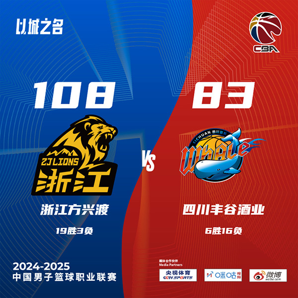 广厦(19-3):布朗23分4篮板11助攻8抢断,奈特15分13篮板2助攻3抢断,林秉圣13分3篮板4助攻,孙铭徽12分2篮板6助攻3抢断,胡金秋8分2篮板,朱俊龙7分2篮板,赵岩昊12分3篮板2助攻,赵嘉仁2分,吴骁2分3篮板,许钟豪2分4篮板,卡尔顿10分4篮板,续峻玮2分1篮板。