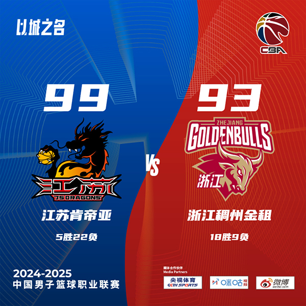 24直播网讯北京时间1月5日讯 CBA常规赛,江苏今日迎战浙江,前者上场比赛战胜广州,后者则是遭遇两连败,此役吴前、程帅澎和余嘉豪缺战。比赛上来,浙江就展示出了火热的进攻状态,一波15-4的开局迅速打停江苏,调整过后江苏并没有改变场上局势,他们单节只拿到18分,次节浙江命中率出现下滑,江苏这边刘泽希单节独得11分带队追分,半场结束时分差还剩8分;下半场回来,江苏继续追分,并利用一波9-0的小高潮成功实现反超,之后两队开始保持拉锯,关键时刻江苏直接打出一波9-0杀死比赛,最终江苏力克浙江迎来赛季首次连胜。