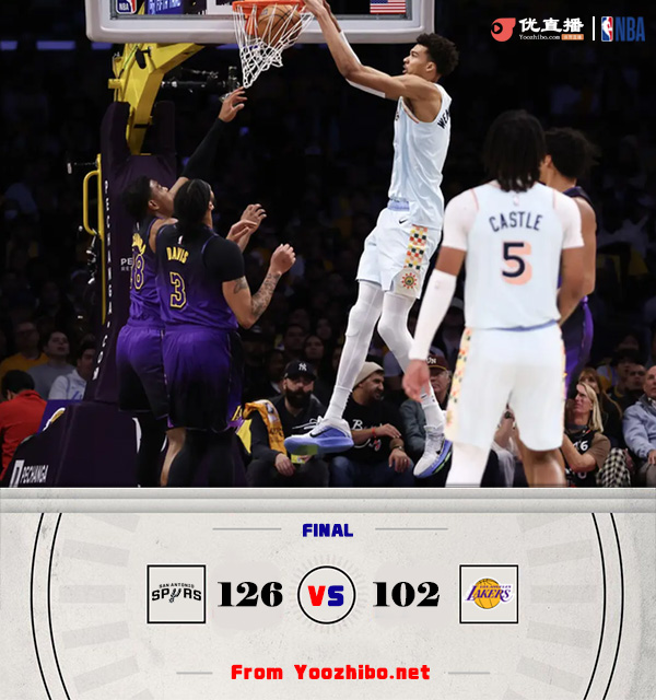 24直播网讯北京时间1月14日讯 NBA今日继续开打,湖人今日坐镇主场迎战马刺。湖人此前因为洛杉矶大火的原因两个主场延期首节之争马刺开局2分半里一分未得导致被动开局,湖人则在里夫斯的连续拿分中取得7-0的开局;不过随着比赛深入马刺渐入佳境,文班亚马和瓦塞尔联手抢分帮助马刺后来居上反超比分;次节双方对攻大半节的时间,不过湖人更胜一筹在末段送出8-0的攻势拉开两位数分差并奠定半场9分领先。休息归来马刺迅速做出回应,凯尔登第三节的压哨三分让双方重新回到同一起跑线;末节决胜马刺彻底接管比赛,马刺在文班亚马并没有太大发挥的情况下仍然轰出20-7的攻势直接拉开两位数分差奠定胜局。最终,马刺客场掀翻湖人,并送湖人3连败。