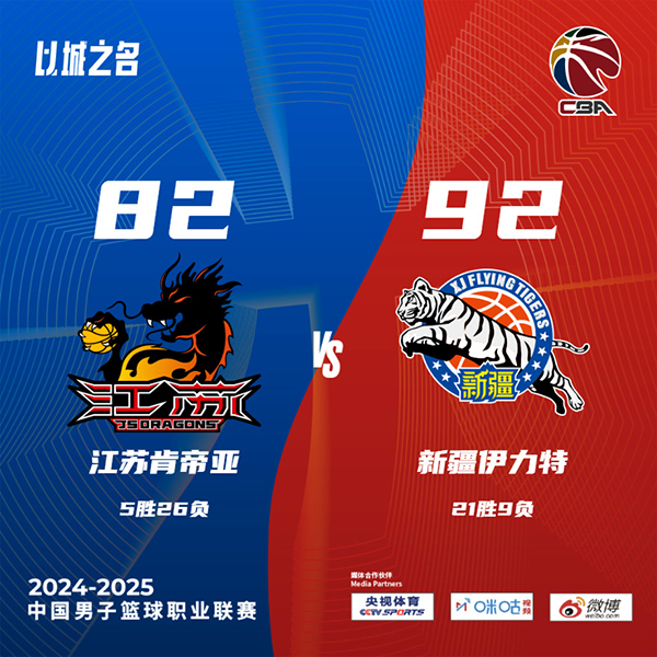 24直播网讯北京时间1月14日讯 CBA常规赛,江苏主场迎战新疆,江苏3连败后5胜25负排在第19位,新疆则是2连败后20胜9负排在第9位。本场比赛,此前被禁赛的赵睿迎来复出。比赛开始,双方上来都很慢热,打了半节都没上双,随后赵睿上场接连送抢断反击助队取得领先,江苏则是靠外援撑着进攻,首节新疆领先7分,次节双方进攻端还是状态一般,江苏依然靠外援得分,赵睿外线继续保持不错手感给出回应,新疆半场依然领先9分。下半场,双方展开拉锯战,崔晓龙上场后有攻有传带队追分,但新疆总能给出回应,伊力福拉提站出来接连三分砍下8分,新疆顺势打出14-2攻击波直接拉开20分以上领先,末节双方命中率都有下降,新疆掌握住20分左右领先但有些松懈,江苏轰出13-0缩近比分,无奈时间所剩无几,最终新疆92-82战胜江苏,终止2连败同时送对手4连败。