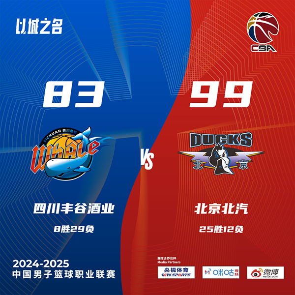 24直播网讯北京时间3月7日讯 CBA常规赛,四川主场迎战北京。四川7连败后8胜28负排在第17位,北京4连胜后24胜12负排在第6位。本场比赛,萨姆纳缺阵。比赛开始,北京很是慢热,打了4分钟没有运动战进球,四川打出9-2开局,随后双方命中率都不高,曾凡博接连反击,周琦连续内线打成,北京追到差4分,次节曾凡博有攻有传联手周琦带队反超比分,但王薪凯接连外线回应,曾凡博压哨中投助北京半场还领先1分。下半场,北京外线连续发炮,纳托尔连中三元,曾凡博也连续外线命中,北京顺势领先到10分,末节北京上来7-0继续拉大比分,四川打了近3分钟才拿到首分,随后北京发力拉开20分以上领先,最终北京99-83轻取四川,拿到5连胜同时送对手8连败。