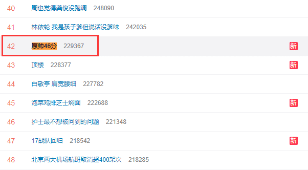 很快“原帅46分”的相关话题也登上了热搜榜,大家纷纷感慨原帅这场比赛真的是开挂一般的存在了,他只要出手就命中,几乎弹无虚发,确实太强了。而且本赛季的原帅确实表现出色,尤其是三分球这点,已经不止一次通过三分球拯救山西男篮了。