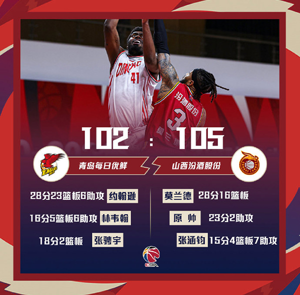 CBA简报:山西105-102险胜青岛 莫兰德28+16