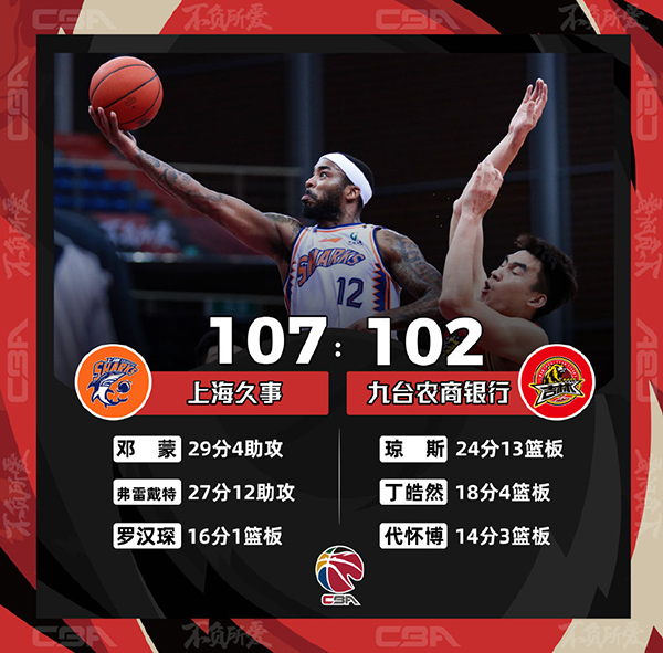 CBA简报:上海107-102险胜吉林 弗雷戴特27+12