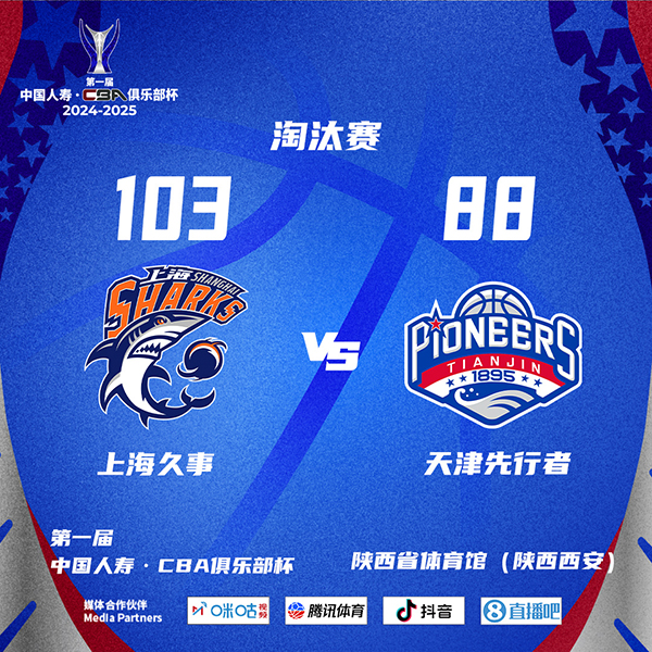 来源:24直播网02-11 09:53 24直播网讯:北京时间2月10日消息,2024-25赛季CBA俱乐部杯在陕西省体育馆展开第3场1/4决赛角逐。上海男篮经过四节较量以103-88战胜天津男篮,晋级四强。