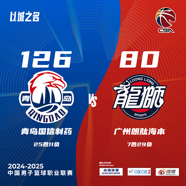 末节,青岛国信制药表现仍显得不够稳定,开局阶段再次手感不佳,分差一度缩小至28分。随着时间的推移,青岛国信制药逐渐找回了比赛的节奏,展现出强烈的进攻欲望,一波进攻将优势扩大至49分。尽管广州朗肽海本继续追分,但最终青岛国信制药以126-80赢下比赛。