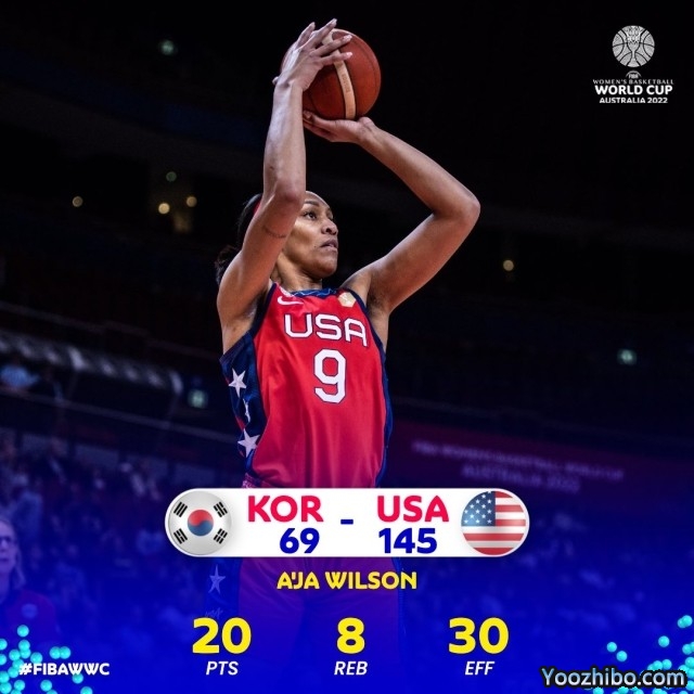24直播网讯:北京时间9月26日消息,2022年国际篮联女篮世界杯继续在澳大利亚悉尼进行,中国队同组的美国女篮今天145-69狂胜韩国队,四连胜继续领跑A组。