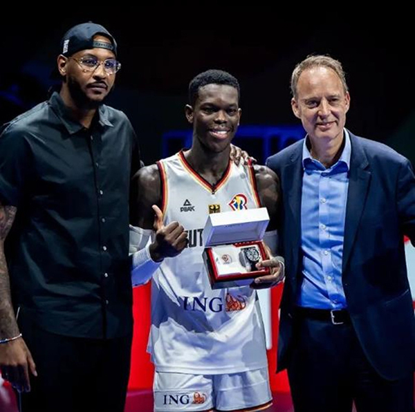 德国男篮和塞尔维亚有一个平分秋色的半场对决,不过拥有施罗德的德国队最终也是笑到了最后,施罗德也是代表德国男篮接受了瓜哥的颁奖,值得一提的是赛后的队长剪篮网的环节,主办方没有准备梯子,站在梯子上的施罗德因为身高不够也是上演了他参加男篮世界杯以来最囧的一幕。