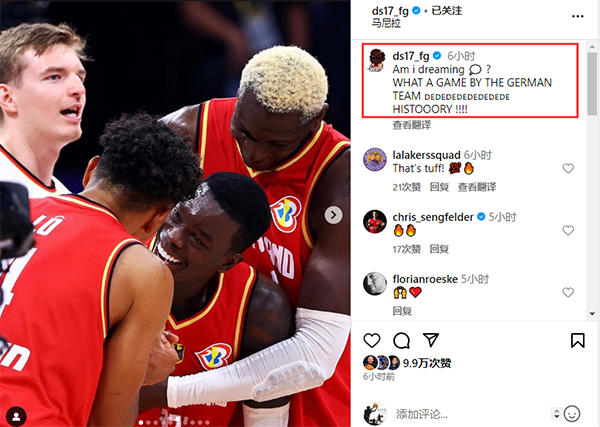 谈到这支德国队,施罗德表示:我的团队非常棒,我认为这是我效力过最好的球队,无论是在NBA还是国家队都是如此。