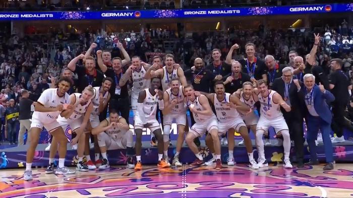 终场前13.7秒,施罗德罚球时,全场高呼MVP;施罗德下场时,全场球迷为他鼓掌庆祝;诺维斯基为德国夺得奖牌而鼓掌庆祝;施罗德带队打破17年奖牌荒,德国时隔17年再次夺得国际大赛奖牌;施罗德兑现诺言,夺得铜牌后全队合影庆祝。