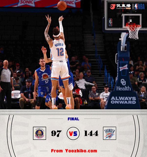 24直播网10月10日讯 NBA季前赛,雷霆对阵马卡比拉阿纳纳。雷霆本赛季继续培养新人,本场比赛亚历山大、基迪均不会出战。一开场,双方难分伯仲,比分始终紧咬,雷霆连续命中三分带着4分优势结束首节。次节上来,雷霆持续外线开火,辛格斯突然发力独得16分,但雷霆持续发力多点开花,半场战罢以71-54领先17分。易边再战,雷霆牢牢占据场上主动,一波10-0将分差拉开到30分以上。马卡比无力招架,雷霆不断扩大优势,三节打完雷霆领先42分。第四节,雷霆轮换阵容依旧占据主动,比赛早早失去悬念。最终,雷霆大胜马卡比。