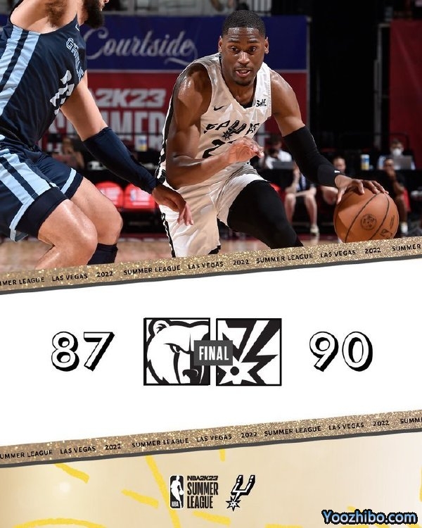 24直播网讯7月17日讯 拉斯维加斯夏季联赛今日继续开打,马刺和灰熊迎来一场交手。上半场争夺两支球队状态相当,虽然首节灰熊率先一波10-0的攻势发动进攻,但马刺很快做出回应迅速追赶上来,不过马刺虽然能咬住比分且多次追平比分,但始终无法反超导致局面稍显被动,最后时刻豪尔和韦斯利的三分进球帮助马刺抹平比分进入下半场。下半场马刺抢占先机在第三节取得久违的领先,而灰熊开局糟糕的表现也直接导致落后9分进入第四节;不过第四节的灰熊迅速组织反击,本场状态出色的“小胖”洛夫顿开场连拿9分,灰熊用一波14-2的进攻高潮一举夺回主动权,不过面对末节独砍15分险些带队翻盘的洛夫顿,马刺这边也有自己的超级英雄,布兰汉姆末段轰进4记三分砍下14分带队反超并守住胜利。最终,马刺惊险击败灰熊结束4连败并迎来夏季联赛首胜。