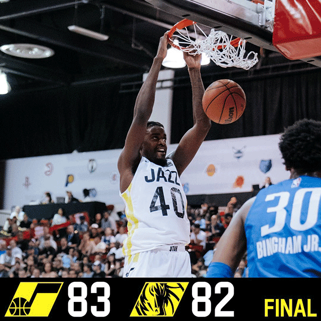 24直播网7月12日讯 NBA拉斯维加斯夏季联赛激战正酣,首战力克老鹰的爵士迎战独行侠,后者首秀中加时惜败公牛,今年的37号新秀杰登-哈迪独得28分,代表独行侠出战的中国球员郭昊文首战并未出场,此役一上来两队状态低迷频频打铁,中段哈丁找到状态为独行侠连续取分,首节他里突外投独得12分,帮助独行侠领先5分结束首节争夺,次节回来,独行侠多点开花一度占优,但中段爵士及时回暖打出10-2小高潮,巴特勒压哨勾手打进,半场战罢,爵士反超2分。易边再战后双方火热对攻比分紧咬,中段爵士连中三分继续占优,法尔肆虐内线予取予求,三节结束后爵士已经领先8分,末节上来,爵士一度将分差扩大到两位数,中段独行侠稳扎稳打蚕食分差,双方分差一度只剩1分,关键时刻朱赞外线对飚哈迪,法尔摘下关键篮板,最终爵士83-82险胜独行侠。