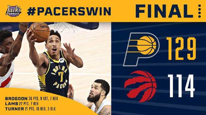步行者(10-7):布罗格登36分7篮板9助攻,萨博尼斯11分3篮板2助攻,特纳21分10篮板,兰姆22分7篮板2助攻,A-霍勒迪10分,麦康纳9分5篮板9助攻,比塔泽10分2篮板。