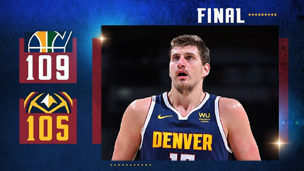 24直播网1月18日讯 NBA常规赛爵士对阵掘金,爵士近来状态不错取得4连胜,开场后爵士外线多点开花早早取得10分优势,随后掘金依靠穆雷的出色发挥逐渐追上比分,第二节虽然爵士外线再次打出攻势,不过穆雷又是接连砍分完成反超,上半场掘金58-53领先5分。下半场回来两队多次在内线交手,两队多次打成平手,第四节爵士在米切尔的带领下再次取得领先,掘金最后连续进攻不中,最终爵士109-105力克掘金取得5连胜。