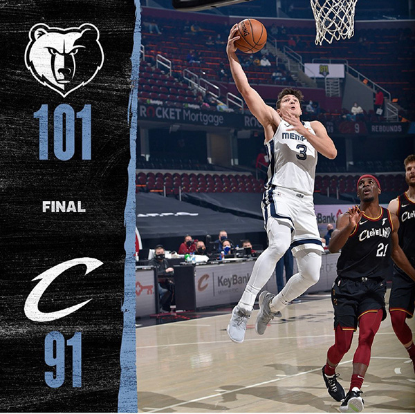 24直播网1月12日讯 NBA常规赛骑士主场迎战灰熊,莫兰特继续缺阵,开场后骑士率先打出攻势取得领先,第二节灰熊主攻内线,麦基和德拉蒙德也连续回应,不过灰熊在上半场结束前掀起反扑完成反超,上半场灰熊47-46领先1分。下半场回来灰熊攻势依旧猛烈将领先优势扩大到两位数,不过骑士依靠外线三分掀起反扑又在第四节将比分追平,但最后时刻灰熊发挥更胜一筹拿下比赛胜利,最终灰熊101-91击败骑士,灰熊取得2连胜,骑士遭遇2连败。