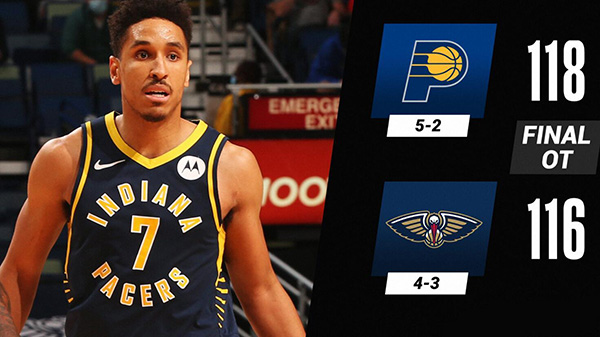 24直播网1月5日讯 NBA常规赛步行者客场挑战鹈鹕,开场后依靠外线更加火热的手感鹈鹕先取得领先,不过步行者多点开花反超比分,第二节双方你来我往打得势均力敌,上半场步行者53-51领先。下半场回来锡安和亚当斯先是在内线发力,不过萨博尼斯马上强势回应,接着步行者外线开花继续保持领先,不过第四节鹈鹕发力完成反超,但他们在最后关头掉线被步行者连追10分拖入加时。加时赛中鹈鹕主要依靠英格拉姆得分,特纳和奥拉迪波帮助步行者取得领先,布罗格登完成准绝杀,鹈鹕最后一攻无果,最终步行者加时118-116力克鹈鹕。
