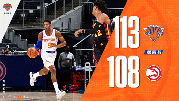 24直播网1月5日讯 NBA常规赛老鹰主场对阵尼克斯,开场后尼克斯多点开花率先取得领先,特雷-杨带领球队追上比分,不过首节尼克斯保持略微领先。第二节两队场上局面仍旧胶着,不过在特雷-杨的带领下老鹰多点开花完成反超,上半场老鹰58-54领先尼克斯。下半场老鹰一度将分差拉大到两位数,不过诺克斯和奎克利连续三分又帮尼克斯缩小分差,第四节尼克斯依靠巴雷特和奎克利的发挥反超比分,特雷-杨为老鹰苦苦追分,但尼克斯将领先保持到最后,最终尼克斯113-108力克老鹰取得2连胜,老鹰遭遇2连败。