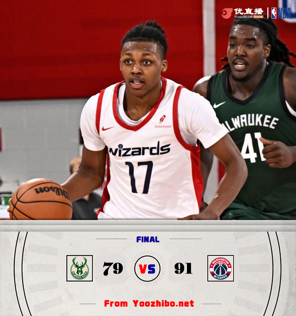 24直播网 7月21日讯 NBA夏季联赛,雄鹿对阵奇才。比赛开始,双方开场短暂相持,随后奇才外线开火,连中6个三分取得两位数领先,次节奇才火力不减,又是三分3连击一举将优势扩大到20分,雄鹿及时回暖打出9-0止血,半场战罢奇才46-35领先11分。易边再战,雄鹿大举反击,多点开花不断蚕食分差,奇才进攻端哑火,雄鹿连中三分完成反超,末节奇才找回手感,里突外投完成19-6的攻击波重获两位数优势,雄鹿苦苦追赶无果。最终,奇才91-79力克雄鹿。