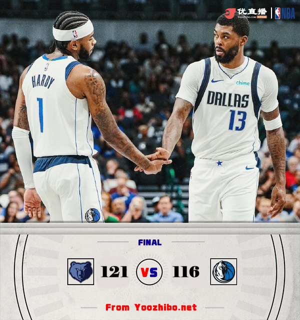 24直播网讯 10月8日讯 NBA季前赛,独行侠主场迎战灰熊,本场比赛欧文、克莱和东契奇缺阵。比赛开始,莫兰特上来就先为灰熊拿到首分,但独行侠依靠三分回应,随后回应一波9-0建立主动权,但戈特曼接连3记三分,独行侠一波11-0追到差3分,次节莫兰特助飞埃迪空接暴扣,双方展开拉锯战,莫兰特突发崴脚下场,莱夫利内线弹无虚发,双方展开对攻战,半场双方打成60平。下半场,莫兰特无碍继续打并连取7分,随后阿尔达马和克拉克撑起灰熊进攻,哈迪也能为独行侠回应,三节灰熊领先3分,末节双方继续深度轮换,你来我往比分交替领先,随后河村勇辉上来有攻有传帮助灰熊掌握微弱领先,韦尔斯三分杀死比赛,最终灰熊121-116险胜独行侠。