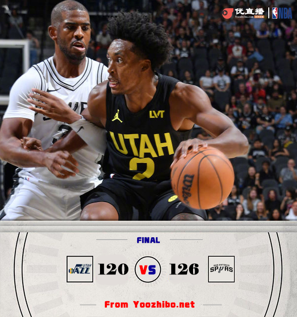 24直播网 10月13日讯 NBA季前赛今日继续开打,马刺今日迎来和爵士的对决,文班亚马因为个人原因缺席本场比赛。首节爵士虽然以9-3开局但很快就被马刺迎头赶上,双方第一节状态相当分差一直很小;次节场面依旧,双方这一节最大分差不过5分,普雷斯顿最后的进球帮助马刺追至1分进入下半场。休息归来双方火力全开,第三节单节两队均拿到近40分的高分但分差始终僵持;末节双方尽遣替补,马刺先是一波8-0反超比分,末段又是一波10-2的攻势拉开7分优势奠定胜局。最终,马刺力克爵士拿下比赛。