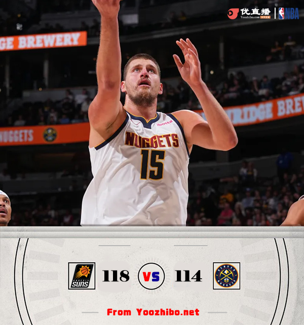 24直播网10月14日讯 NBA季前赛,太阳对阵掘金,本场比赛太阳三巨头均缺战。开场后太阳外线手感火热连中三分取得领先,掘金逐渐找到手感也在外线给出回应,约基奇篮下也接连打进,掘金完成反超。第二节太阳依旧主要靠外线追赶比分,掘金则是在约基奇带领下打得有条不紊,小波特也是连续投篮命中,半场过后掘金手握9分优势。易边再战,两队大打对攻战,掘金依旧围绕约基奇开展进攻,太阳外线手感火热用三分雨缩小分差,第四节掘金主要也用替补出战,太阳延续攻势反超比分,最终太阳118-114逆转掘金。