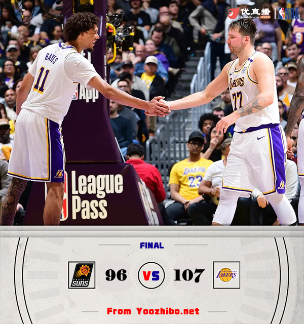 24直播网讯3月17日NBA常规赛,湖人主场迎战太阳。湖人已经经历4连败,目前40胜25负西部第5位;太阳则是31胜36负西部第11位。本场比赛是湖人5天4赛中的第3场比赛,海斯、芬尼-史密斯迎来复出;詹姆斯继续缺阵。比赛开始,湖人上来打出7-0不错开局,太阳迅速回应9-1反超,随后东契奇连续外线发炮带队建立主动权,文森特三分再中一度拉开20分领先,次节双方展开拉锯战,太阳三巨头状态不佳,外线颗粒无收,里夫斯接连中远投命中,海斯继续吃饼,半场湖人还领先17分。下半场,比尔因腿筋伤退,杜兰特连续中远投砍下8分带队一度追到个位数分差,东契奇又是送妙传止血后连续杀伤内线稳住领先优势,三节湖人还领先12分,末节双方命中率都有下降,里夫斯3+1后东契奇再打2+1帮助湖人牢牢守住双位数领先,最终湖人107-96击退太阳,终止4连败。