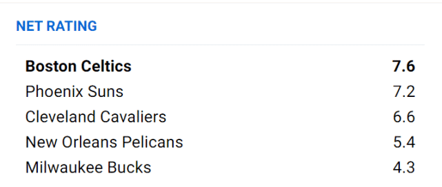 塔图姆和布朗被东契奇称为“联盟最好的双人组合”,在他们的带领下,绿军已经成为今年冲冠的头号热门。在最新的夺冠赔率榜上,绿军排名第一;在FiveThirtyEight的夺冠概率榜上,绿军同样排名第一;而在官方最新的实力榜上,雄踞榜首的同样是绿军。