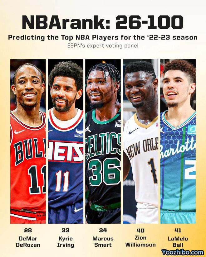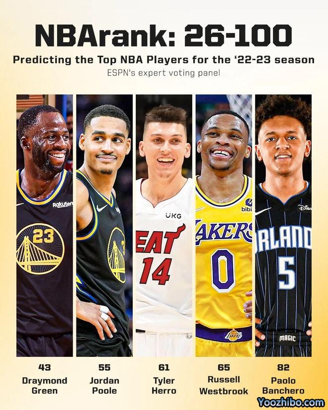 24直播网09月24日著名NBA媒体ESPN评出了一年一度的NBA新赛季百大球员,今日放出了100-26的球员,具体排名如下: