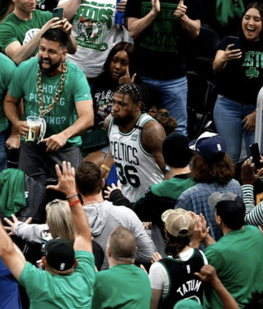 第二节,凯尔特人一度落后到26分,塔图姆终于得分,斯玛特和霍福德也输送火力,不过半场打完绿军落后15分,分差依旧很大。下半场,凯尔特人疯狂反扑,斯玛特和塔图姆伤后不久便重返赛场,为了比赛真是太拼了;今日一战,场上多次出现倒地拼抢地板球,然后跳球争夺球权的情况。