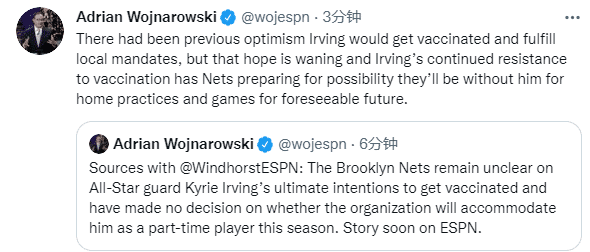 两笔交易细节曝光!欧文拒绝接种最新情况,名记:篮网为他缺席做准备