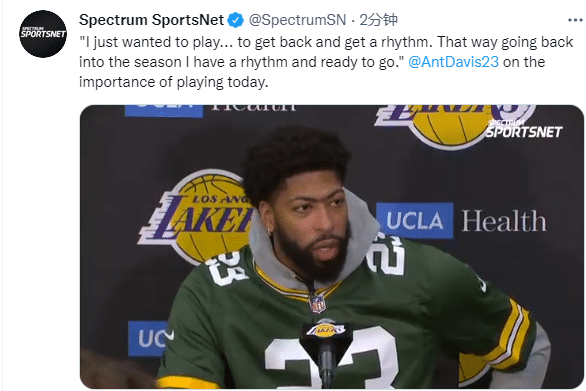湖人三巨头只有浓眉上场比赛,全场首发出战11分16秒,6投2中拿到6分1篮板1助攻1抢断,开场单挑米尔萨普打成不讲理2+1点燃全场;詹杜登威登等巨星都选择休战,为何浓眉出战?因为浓眉太想打比赛,想在常规赛开始之前找回节奏。