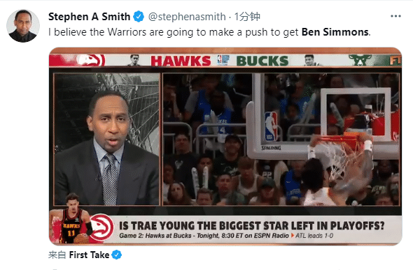史密斯还表示:我不是说它会立即发生,但我相信勇士会努力争取西蒙斯,已经有人打过电话了,事情正在慢慢演变,如果最终这件事发生,我一点也不会感到惊讶。