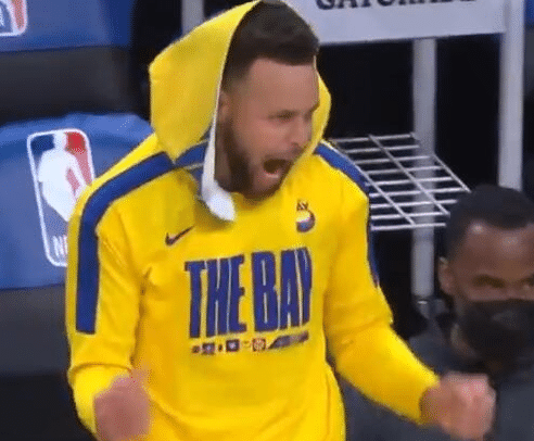 这场比赛库里的状态确实很好,除了得分帮助勇士取得领先之外,他在比赛中的投入度也很高,队友维金斯转身上篮,迎着2人防守打成2+1,库里兴奋庆祝就如同一个孩子一样。同时库里还有和追梦格林神同步的时刻,确实很有趣。