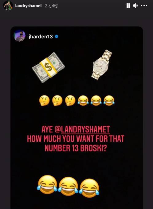 价格不菲!哈登拿走沙梅特13号球衣问他想要啥,后者:美金和手表!