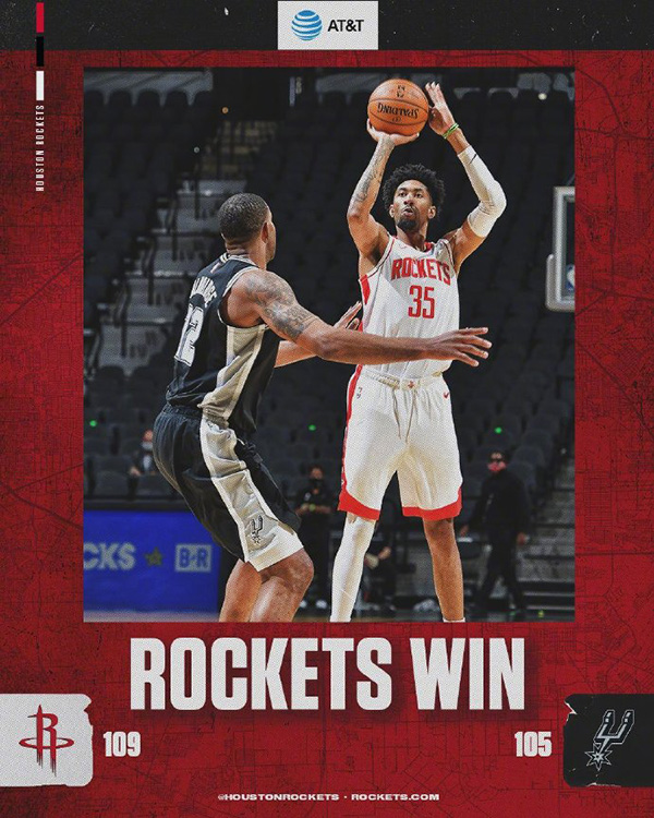 来源:24直播网01-15 11:36 24直播网讯:北京时间1月15日,2020-21赛季NBA常规赛继续进行,休斯顿火箭客场挑战圣安东尼奥马刺。全场打完,火箭109-105逆转马刺,止住两连败。