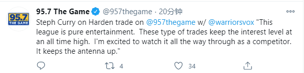 库里表示:很疯狂,我知道这个联盟发生什么都不应该惊讶,过去4-5年也发生了太多惊天交易,但这事儿发生时仍然让人感到疯狂,联盟的格局立刻就此发生了改变。