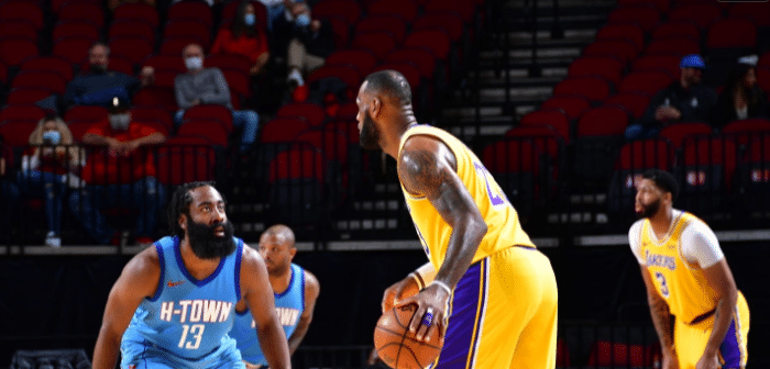 次节比赛开始,双方轮换球员登场,湖人连续拼下进攻篮板完成补扣,双方分差进一步拉开,詹姆斯在次节命中了2记三分,轻松贡献12分,浓眉哥则拿下6分,哈登在次节贡献8分,沃尔贡献10分,双方在次节比赛战成36-34