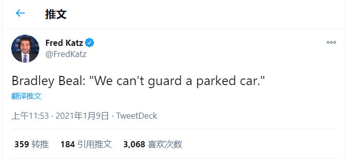 沮丧!2场101分全输,比尔疯狂自嘲:我们连停着的车都防不住