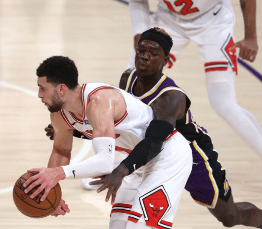 下半场比赛公牛一度拉开比分,不过很快湖人就追上了比分,拉文在第三节再次得到8分3篮板,温德尔卡特在本节贡献12分,湖人方面詹姆斯单节贡献10分2篮板3助攻,末节比赛开始,湖人一度拉开比分,不过随后詹姆斯体能亮起红灯,最后5投仅1中,公牛也借机缩小比分,不过最后时刻施罗德站了出来,个人连续得分,湖人最终117-115赢下了比赛