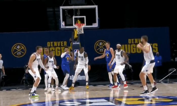 今天的比赛两队迎来了一场惨战,常规时间两队打成了109平,常规赛时间最后时刻,掘金当时落后独行侠2分,留给掘金的时间只剩下2.4秒,约基奇在底角位置接到球后,他迎着防守人完成了超高难度的撤步跳投,皮球稳稳进框,凭借着约基奇的绝平中投,掘金将比分拖入了加时,生死时刻约老师展现了超巨的水准。