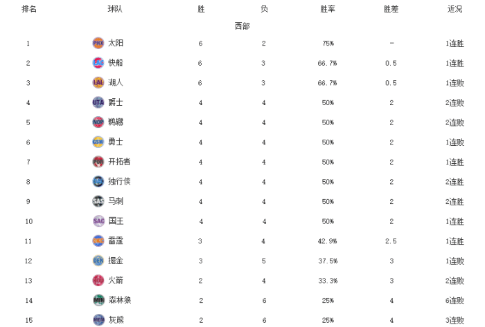 NBA最新排名!太阳霸榜,马刺复仇湖人,西部7队4胜4负大乱斗