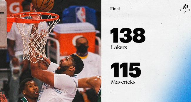 NBA简报:湖人138-115轻取独行侠 詹眉合砍50分
