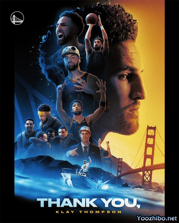 勇士官方宣布,克莱-汤普森结束勇士13年生涯,晒照谢别汤普森并且再次声明未来他们将退役汤普森的11号球衣。