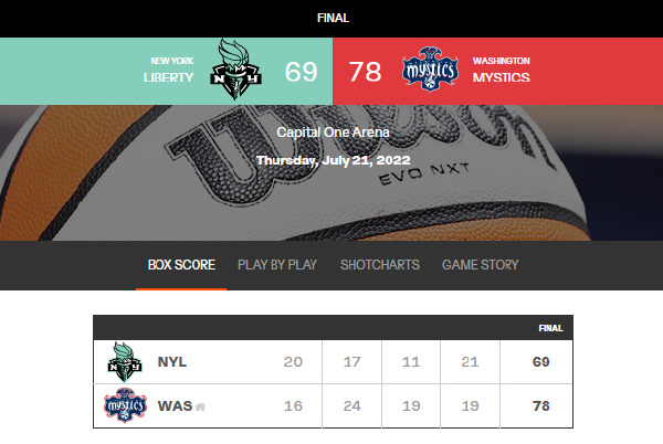 07月21日 WNBA常规赛 纽约自由人vs华盛顿神秘人 全场录像及集锦
